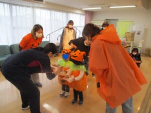 10月31日(金)、ウェルキッズの子ども達がハロウィンで可愛らしい仮装をして、サンライズ北九州に遊びに来てくれました。