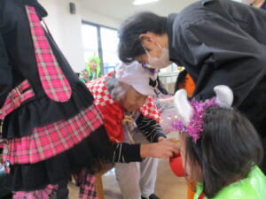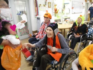 サンライズのご利用者様も、負けじと可愛らしい仮装をして、子ども達をお出迎えをしました( *´艸`)    可愛らしいでしょ???(*‘∀‘)